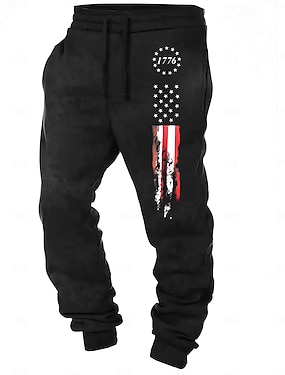 Американский флаг На каждый день Муж. 3D печать Штаны Джоггеры Брюки на открытом воздухе Для улицы На каждый день Полиэстер Черный Белый Темно синий S M L Нормальная Эластичность Брюки