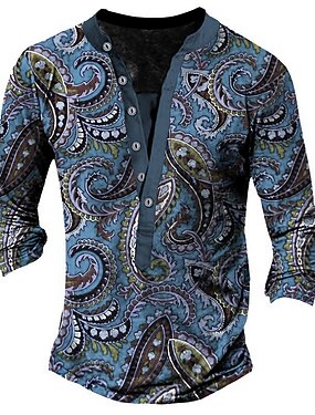 Муж. Индийский Рубашка Хенли Длинный рукав 3D печать Ретро Этнический Для улицы Повседневные Праздники Зима Весна & осень Желтый Серый Хенли Футболка Хенли