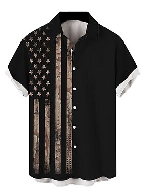 Муж. Американский флаг США Рубашка Западная рубашка Кнопка рубашка С короткими рукавами На каждый день На каждый день На выход выходные Осень Отложной С принтом Кнопка вниз Черный Белый Красный