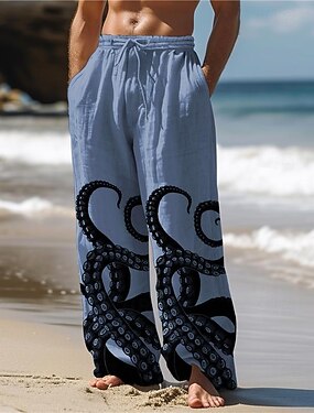 Муж. Гавайский Осьминог Брюки 3D печать Прямые брюки Нормальная Эластичная талия на шнурке на открытом воздухе Для улицы Праздники Лето Весна Осень Очень свободное облегание Слабоэластичная