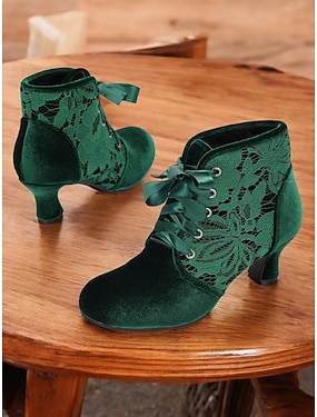 женские винтажные викторианские зеленые бархатные ботильоны с кружевными вставками | удобные и стильные для косплея и особых случаев