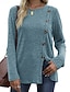 Жен. Текстурная блузка Футболка Полотняное плетение На каждый день Длинный рукав V-образный вырез Обычные топы Повседневные На выход Пуговицы Черный Пыльно-синий Пурпурный Коричневый Бежевый Осень