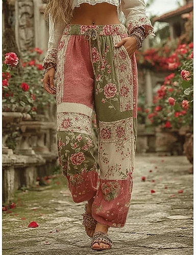 Жен. Широкие Брюки Мода Уличный стиль Полная длина Нормальная Цветочный принт Карман Эластичная талия С принтом удобный Воздухопроницаемость Слабоэластичная