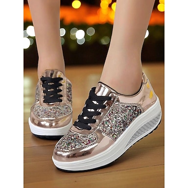 Женские блестящие кроссовки на платформе — модная повседневная обувь на шнуровке и массивной подошве для вечерних мероприятий. &наряды для вечеринок