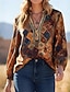 Жен. Рубашка Бохо Рубашка Блуза Цветы Современное Богемный Длинный рукав Рубашечный воротник Обычные топы Повседневные Праздники С принтом Светло-зеленый Розовый Синий Оранжевый Зеленый Лето