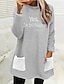 Жен. Пуловер Толстовка Буквы Теплый Мода На каждый день Длинный рукав Вырез под горло Длинные топы Для улицы На каждый день Повседневные Пэчворк Карман С принтом