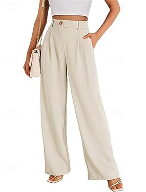 Жен. Широкие Брюки Уличный стиль На каждый день Полная длина Завышенная Сплошной цвет Карман Воздухопроницаемость Мягкий Слабоэластичная Отпуск Для улицы На каждый день