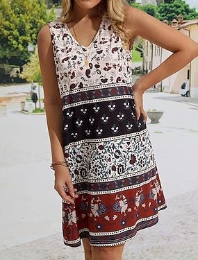 Жен. Мини-платье Цветочное платье Платье в стиле бохо Платье с принтом Мода Классика Современное Отпуск Повседневные Праздники Стандартный Цветы Без рукавов V-образный вырез Черный Лето