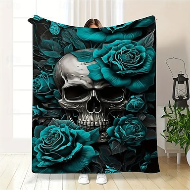 Флисовый плед для дивана на Хэллоуин с рисунком скелета розы 3D в стиле темного панк-готики для вечеринки, дивана-кровати, декоративное теплое одеяло для домашнего декора