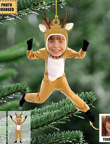 Персонализированные рождественские украшения с фотопечатью акриловые милые оленята 2D на заказ украшения для рождественской елки рождественское декорирование висячие подвесные подарки