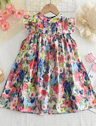 Дети Девочки Платье Графика Без рукавов Для вечеринок на открытом воздухе Повседневные Мода Очаровательны Повседневные Полиэстер Лето Весна 2-13 лет Несколько цветов