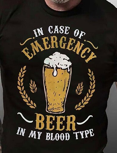 Мужская смешная футболка с графикой пива - 'В случае чрезвычайной ситуации пиво в моей группе крови' короткий рукав