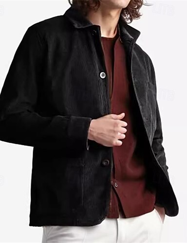 Муж. 2 предмета Комплект рубашки Подходящие наборы Повседневная рубашка Вельветовая рубашка Кнопка рубашка Черный Коричневый Зеленый Хаки Серый Длинный рукав Полотняное плетение Воротничок