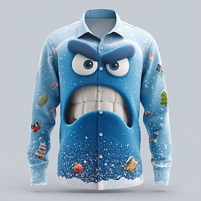 Новогодняя тематика Муж. 3D в мультяшном стиле Рождественский подарок Неловкое лицо Рубашка Кнопка рубашка Длинный рукав Веселая на открытом воздухе Праздники Весна Осень Отложной 3D