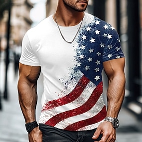 Патриотические футболки для мужчин Американский флаг США Орел Футболка с коротким рукавом 3D печать Футболка с круглым вырезом Модная Повседневная Основная Уличная Повседневная Синяя Летняя Весенняя