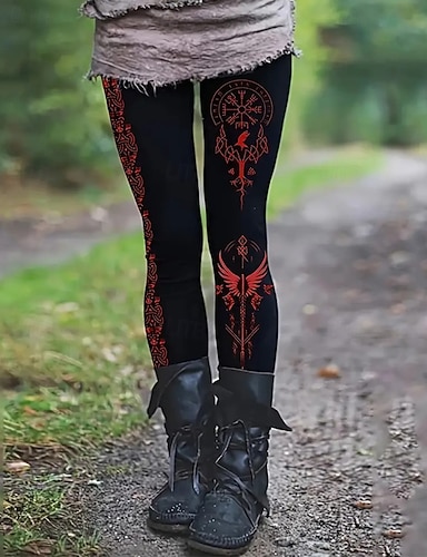 Жен. Чино Леггинсы Уютные леггинсы Винтаж Этнический стиль Классический Полная длина Завышенная Графика Рисунок Сохраняет тепло Удобный Эластичная Отпуск Для улицы Повседневные Красный Осень Зима