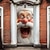 Рождественское дверное покрывало, красный фон, праздничное украшение, шторы с Санта-Клаусом, рождественские украшения, листья падуба и красные ягоды, принт для дома, прихожей, гостиной, спальни,