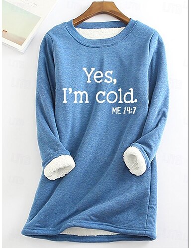 Женская толстовка-свитшот с надписью «Yes Im Cold» с рисунком, теплая, повседневная, пушистая, с длинным рукавом, круглым вырезом, с круглым вырезом, с длинными топами, повседневная, светло-розовая, черная, темно-розовая, синяя, весна, осень, зима