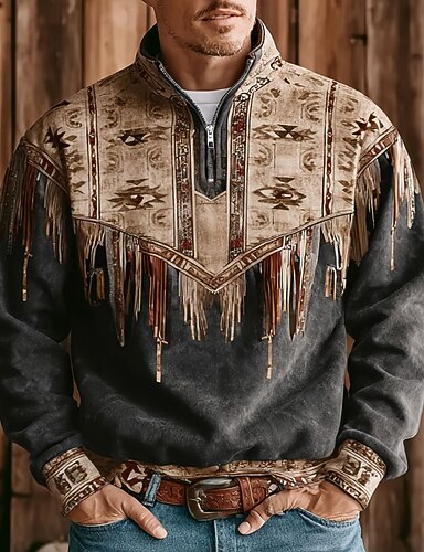 Муж. Ковбой Костюм Толстовка Этнический Винтаж Ретро Воротник-стойка на открытом воздухе Офис Подарок Черный Коричневый Молния Осень Зима Дизайнер