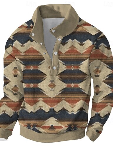 Муж. Ацтеков Толстовка Этнический Винтаж Ретро Вырез под горло Подарок Путешествия Уличная одежда Желтый Синий Кнопка спереди Осень Зима Дизайнер