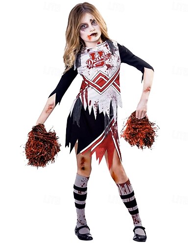 Зомби черлидеров День всех святых Платья Необычные костюмы Ужас Страшный костюм Детские Девочки Хэллоуин Карнавал Выступление Для вечеринок Легкие костюмы на Хэллоуин Одеваемся