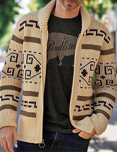 Муж. Вязаная ткань Кардиган Свитер с узором Fair Isle Рельефный узор Вязать Обычные топы Трикотаж Полотняное плетение Шалевый Отпуск Мода Повседневные На каждый день Одежда Осень Весна & осень