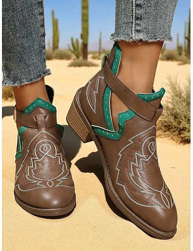 Женские коричневые ботинки в стиле вестерн – обувь из искусственной кожи в ретро-ковбойском стиле для осенних нарядов и фестивалей