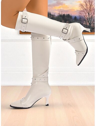 Женские белые сапоги на блочном каблуке до колена – шикарные длинные сапоги в стиле ретро для вечеринок, костюмов и стильных зимних образов