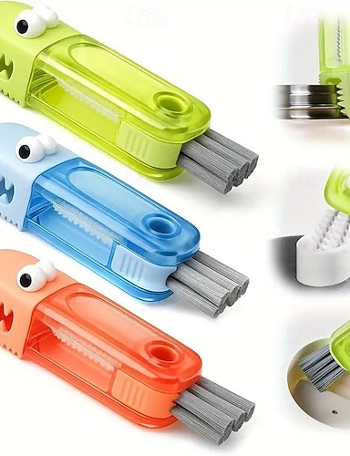 Набор из 3 щеток-крокодилов 3-в-1 – глубокая очистка узких крышек чашек, углублений для бутылок и щелей между столовыми приборами, прочная щетина, портативный инструмент для уборки кухни для дома и