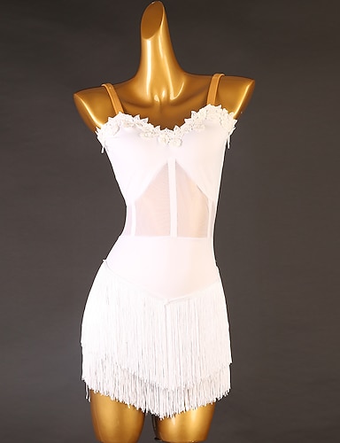 Латино Платье Стразы С кисточками Жен. Выступление Учебный Без рукавов Завышенная талия Спандекс Тюль