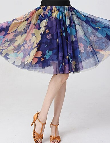 Латино Юбки Рисунок Планка Жен. Выступление Учебный Завышенная талия Полиэстер