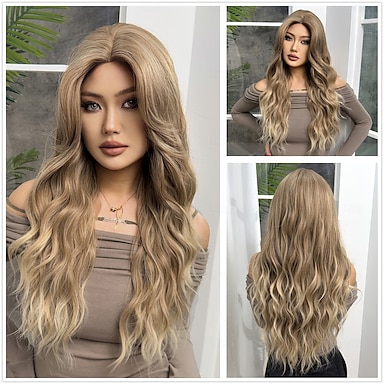 длинный светлый парик с омбре для женщин 26 дюймов синтетические светлые волнистые парики средняя часть термостойкие волосы длинный светлый парик для ежедневной вечеринки парики barbiecore