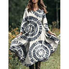Жен. Платье средней длины Этническое платье Летнее платье Платье с принтом Винтаж Этнический Туземные на открытом воздухе Повседневные Свидание Стандартный Цветочный принт Этно Рукав до локтя