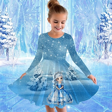 Девушки ' 3D Графика Мультипликация В снежинку Платье Длинный рукав Лето Весна Отпуск Повседневные Праздники Принцесса Красивый Милая Дети 4-12 лет Повседневное платье Платье A-силуэта До колена