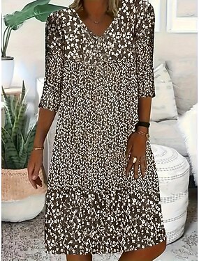 Жен. Платье средней длины Цветочное платье Платье с принтом Классика Современное на открытом воздухе Отпуск На выход Стандартный Цветы С короткими рукавами V-образный вырез