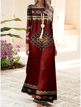 Жен. Платье средней длины Зимнее платье Этническое платье Платье с принтом Винтаж Этнический Туземные на открытом воздухе Отпуск Повседневные Свободное облегание