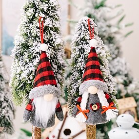 рождественский гном плюшевый подвесной орнамент декоративные принадлежности, безликая кукла светящийся подарок, рождественский красно-черный грудольф с огнями, маленькая кукольная игрушка
