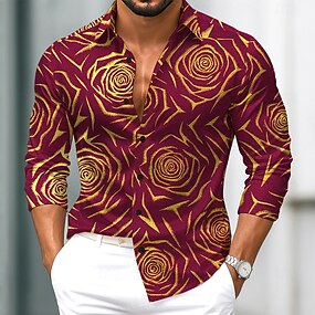 Муж. Цветочный / Цветок Роуз Атласная рубашка Рубашка Кнопка рубашка Длинный рукав Мода Повседневная Свадьба Отпуск Для вечеринок Лето Весна Отложной Рубашки с воротником 3D