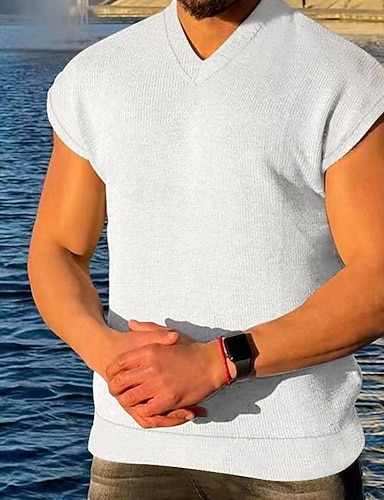 Муж. Вафельная майка Безрукавка Жилет Майки Без рукавов V-образный вырез Лето Полотняное плетение Мода Спортивные Классика 2 предм Классический Для улицы Повседневные Спорт