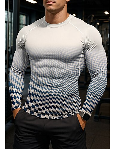Муж. Футболка для бега Спортивная рубашка Фитнес-рубашка Рубашка тренировки Беговой верх Длинный рукав Футболка Футболка Геометрический принт UPF 50 Устойчивость к УФ Мягкий Впитывает пот и влагу