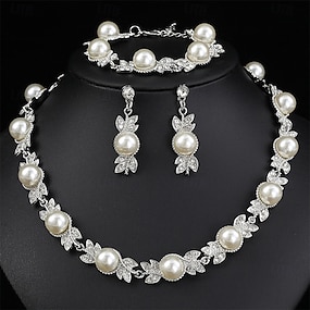 Набор украшений 3 Белый Жемчуг Хром 1 браслет Серьги Ожерелья Жен. Элегантный стиль Винтаж Мода Старинный Классический Комплект ювелирных изделий Назначение Свадьба Для вечеринок Свадебный гость
