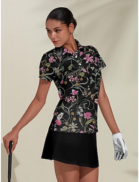 Жен. Футболка-поло Черный С короткими рукавами Верхняя часть Цветочный принт Женская одежда для гольфа Одежда Одежда Одежда