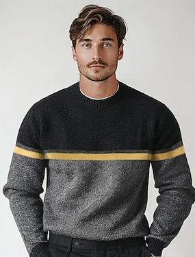 Муж. Пуловер Свитер Вязать Контрастных цветов Вырез под горло Вязаная одежда Элегантный стиль Рождество на открытом воздухе Одежда Осень Зима Черный Красный S M L