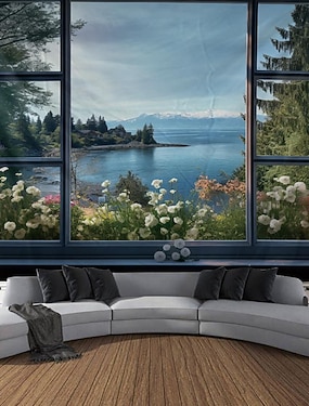 Вид из окна пляж висит гобелен настенное искусство большой гобелен фреска декор фотография фон одеяло занавеска для дома спальня гостиная украшения океан лето