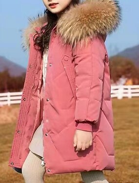 Дети Девочки Пуховик Куртка для активного отдыха Сплошной цвет Мода Меховая оторочка Сохраняет тепло Защита от ветра на открытом воздухе Пальто Верхняя одежда 4-12 лет Осень Розовый Лиловый Бежевый