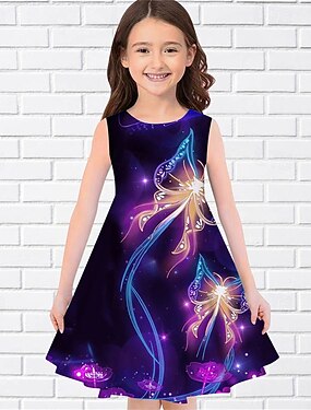 Девушки ' 3D Графика Платье Без рукавов Лето Весна Отпуск Повседневные Праздники Принцесса Красивый Милая Дети 4-12 лет Повседневное платье Платье A-силуэта До колена Стандартный