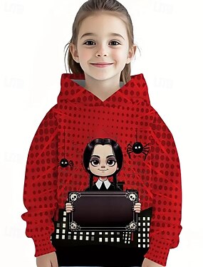 Толстовка с капюшоном с рисунком из мультфильма для девочек, летняя, готическая, с длинными рукавами, дышащая, модная, на Хэллоуин для девочек