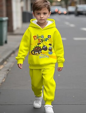 Мальчики 3D Динозавр Дракон Комплект с капюшоном и спортивными штанами Набор Длинный рукав 3D печать Осень Зима Активный Мода Круто Дети 3-12 лет на открытом воздухе Отпуск Для улицы Стандартный
