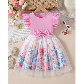 Дети Девочки Платье Цветочное платье Бабочка Без рукавов на открытом воздухе Повседневные Узел галстука Мода Очаровательны Полиэстер До колена Повседневное платье Платье A-силуэта Лето Весна 4 года +
