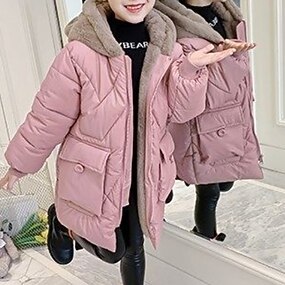 Дети Девочки Пух Сплошной цвет Мода Меховая оторочка Молния Карман Школа Пальто Верхняя одежда 4-12 лет Зима Розовый Лиловый